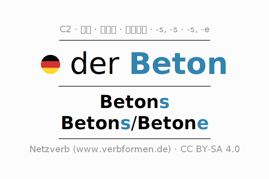 - 単数: der Beton, des Betons, dem Beton, den Beton